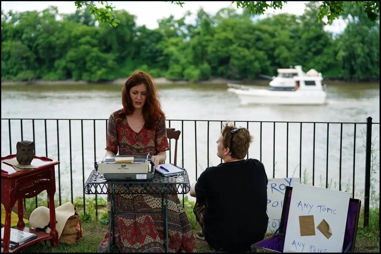 She would set up her typewriter at the Troy Flea market, along River Street during the Enchanted City festival, at Troy Night Out on the last Friday of every month or on Freedom Square with a sign that read: “Troy Poem Project.” She would coax a poem out of whomever sat next to her, typing it out on a piece of paper and then giving it to the newly minted poet. Or she would help children type letters to parents in prison.
