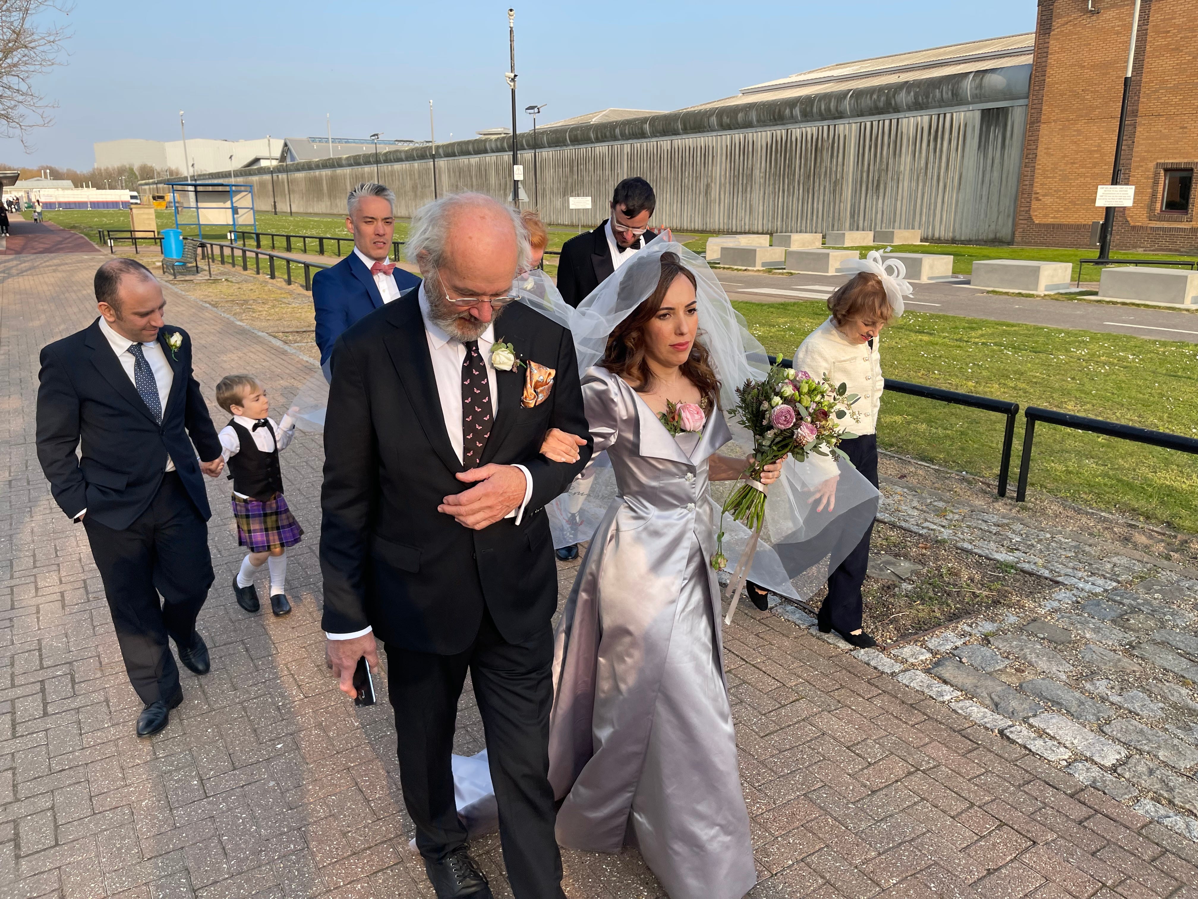John Shipton, Julian Assange’s father, and Stella Moris on their way into HM Prison Belmarsh for the wedding.